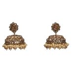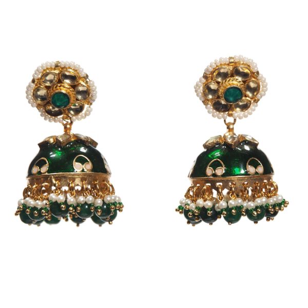 Beautifully handcrafted green jhumkis with white pearl detail and green drops.