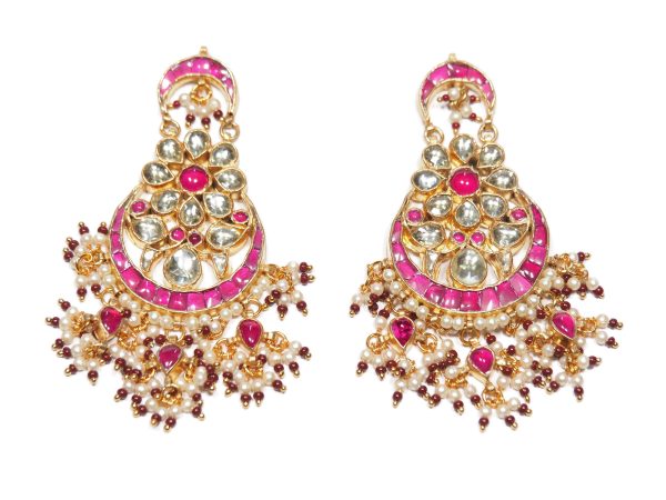 Pink hand painted gold plated chandelier earrings with pearl drops.